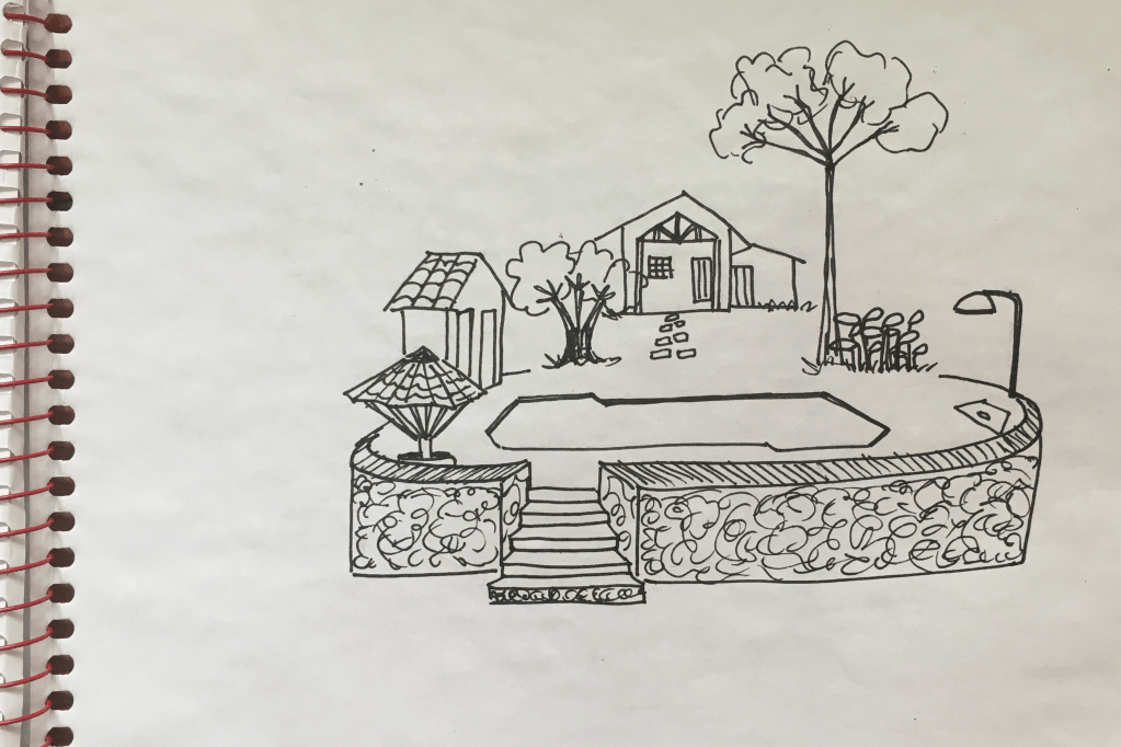 Antes de desenhar no Photoshop, foram tiradas fotos dos principais pontos e realizados esboços, como você pode observar abaixo: