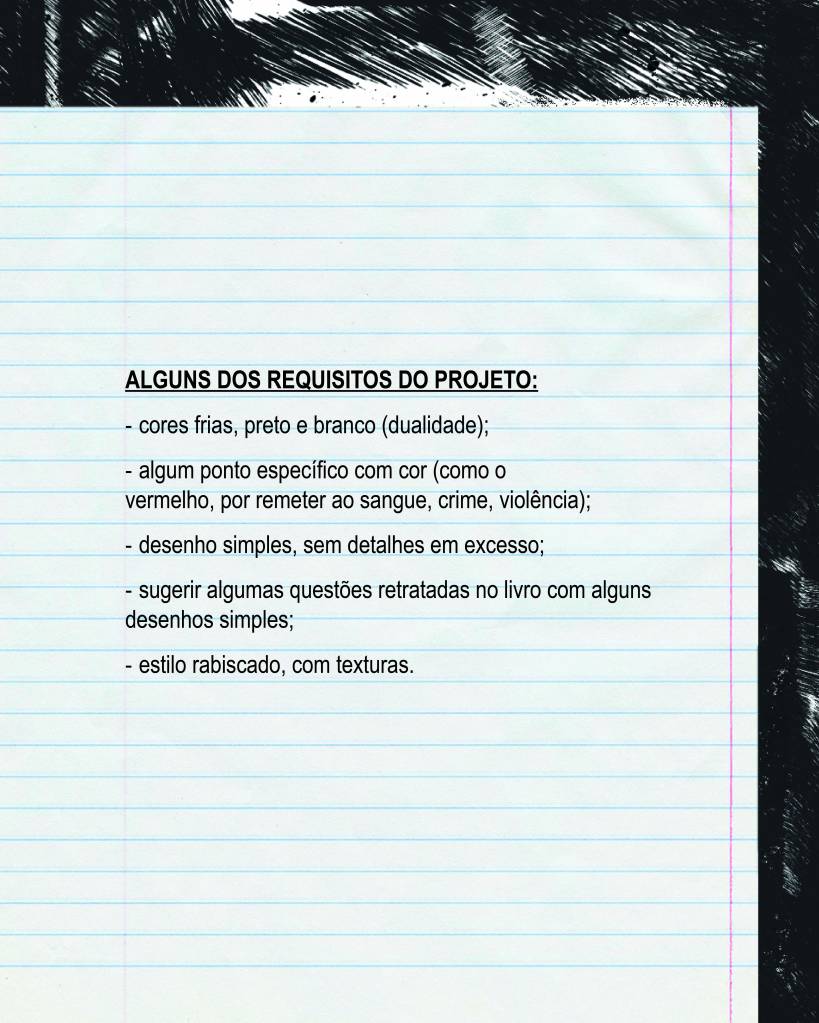 Foi um projeto que exigiu sensibilidade para traduzir visualmente um tema denso e socialmente relevante, buscando uma linguagem gráfica que dialogasse com o conteúdo da obra.